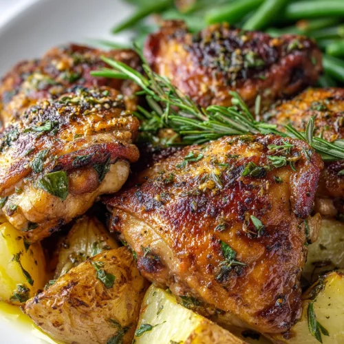 It’s an easy sheet-pan meal that combines juicy, herb-crusted chicken with golden-roasted baby potatoes and crisp-tender green beans. Minimal prep, straightforward seasoning, and clean-up is a breeze. The lemon-garlic marinade lifts the flavors, while tossed herbs give it a fresh finish.