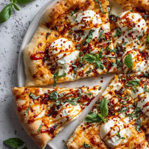 - Serve: Top with fresh basil or extra chili flakes and slice immediately.