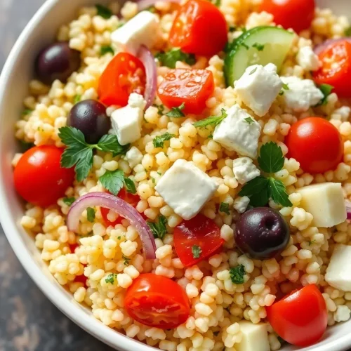 This Mediterranean Couscous Salad is a versatile, joyful dish that brings brightness to any table. Quick to prepare, easy to adapt, and full of texture, it’s a recipe that fits weeknight dinners, meal prep, and weekend gatherings equally well. Make a batch, share it with friends, and enjoy the simple pleasure of fresh, vibrant food.