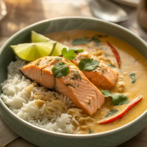 You don’t need to be an expert cook to pull this off. With just a few pantry staples — coconut milk, curry paste, lime, and salmon — you can whip up a restaurant-worthy meal in under 30 minutes.